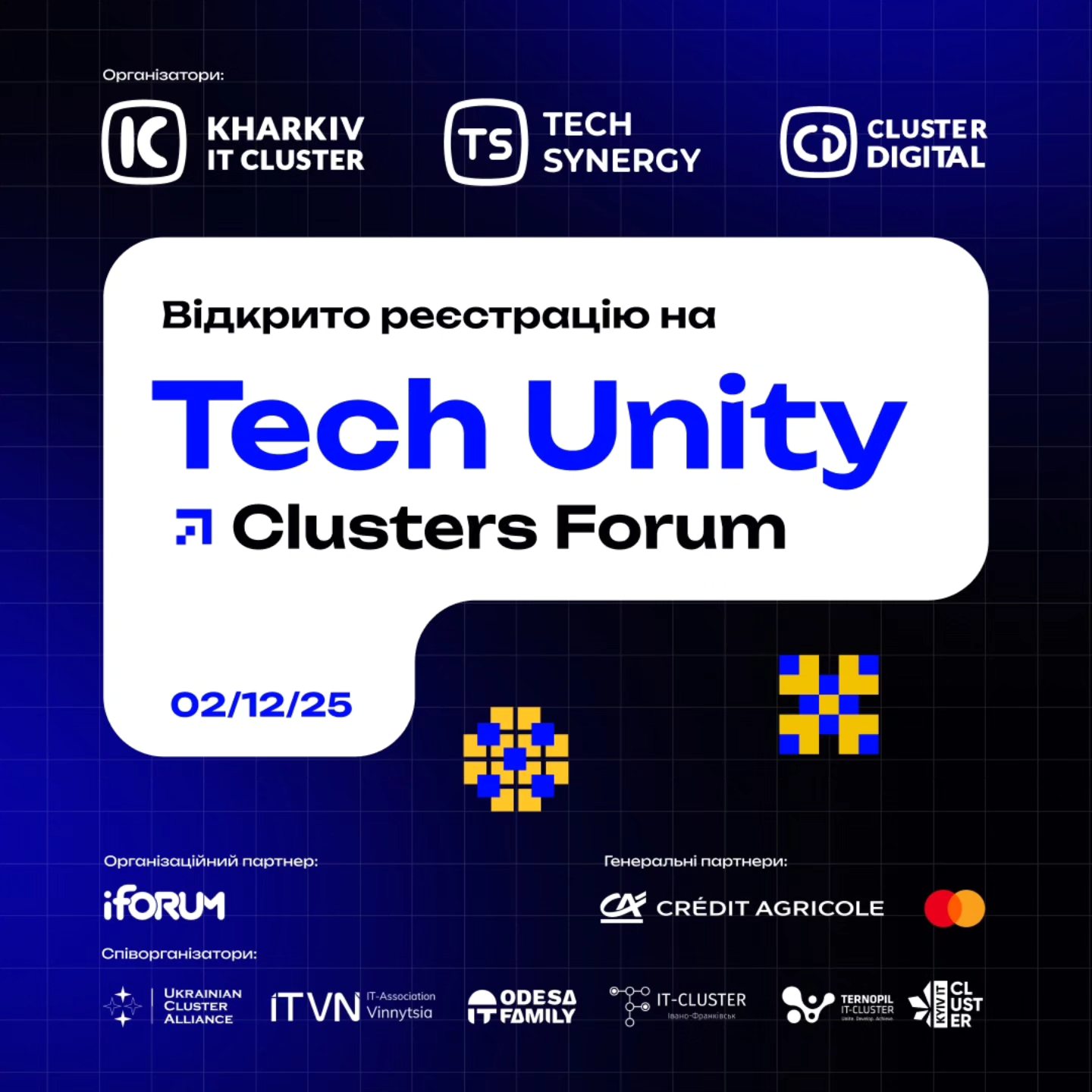 On December 2, the Tech Unity: Clusters Forum will take place at the Mystetskyi Arsenal — the first event to bring together all IT clusters of Ukraine, along with the tech industry, education, investors, and government representatives.